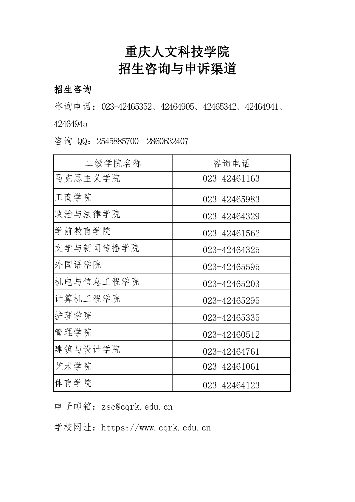 重庆人文科技学院招生咨询与申诉渠道
