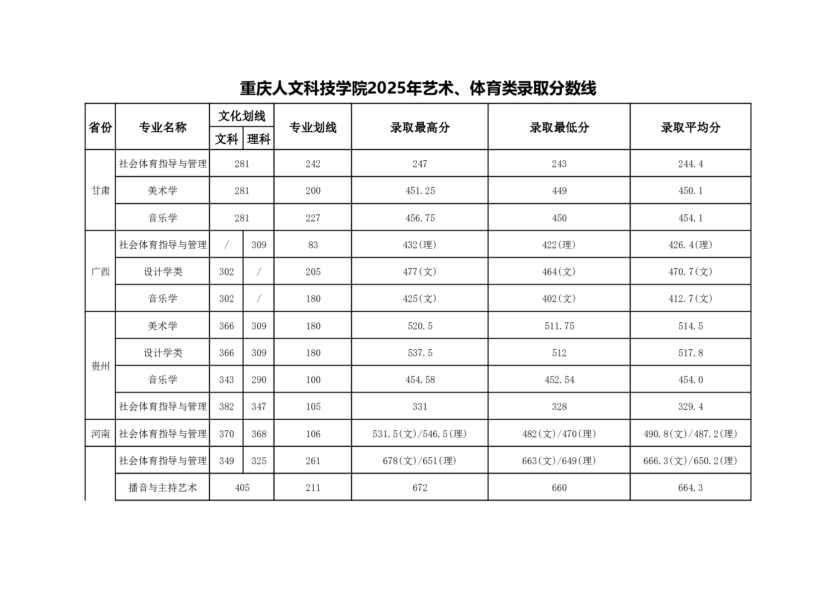重庆人文科技学院2025年普通类分省分专业录取分数线