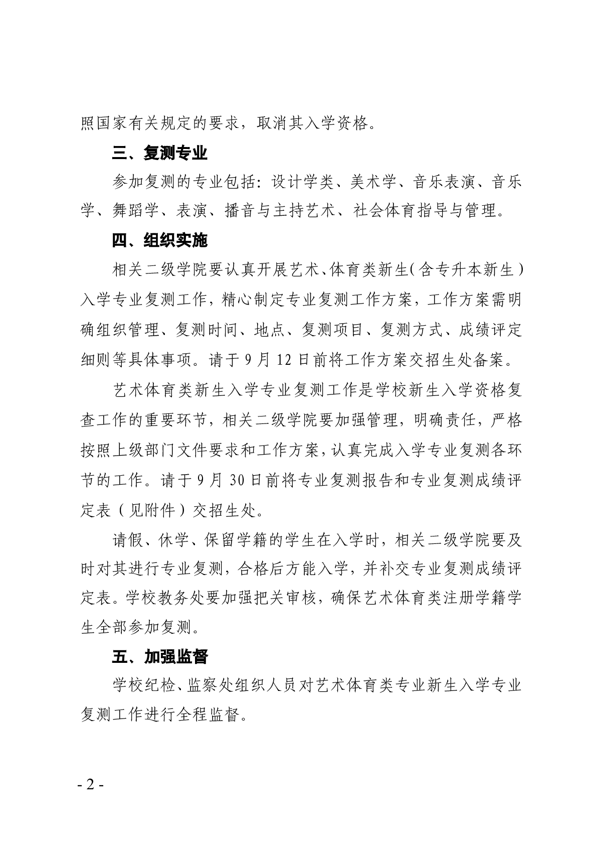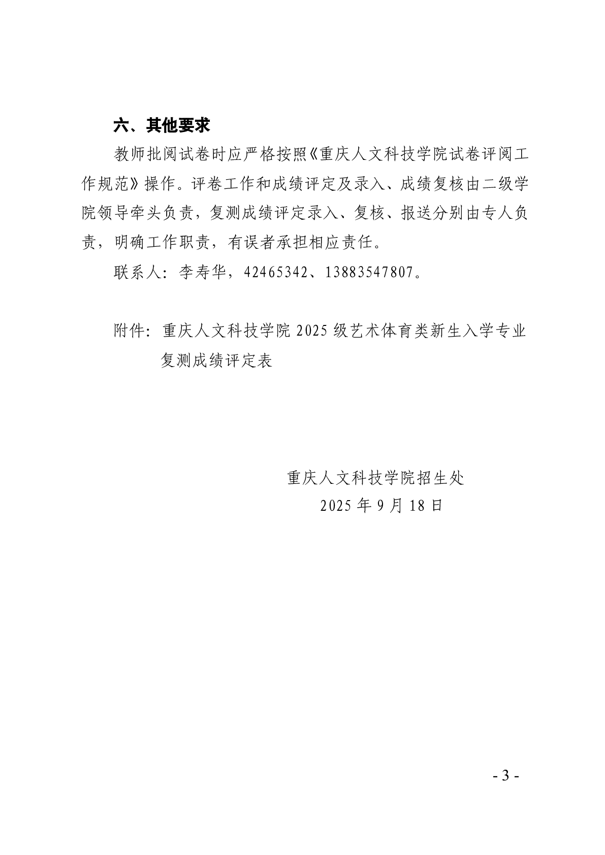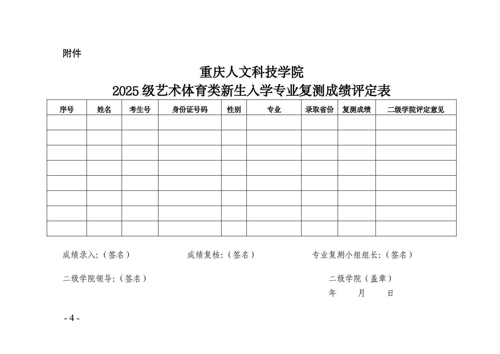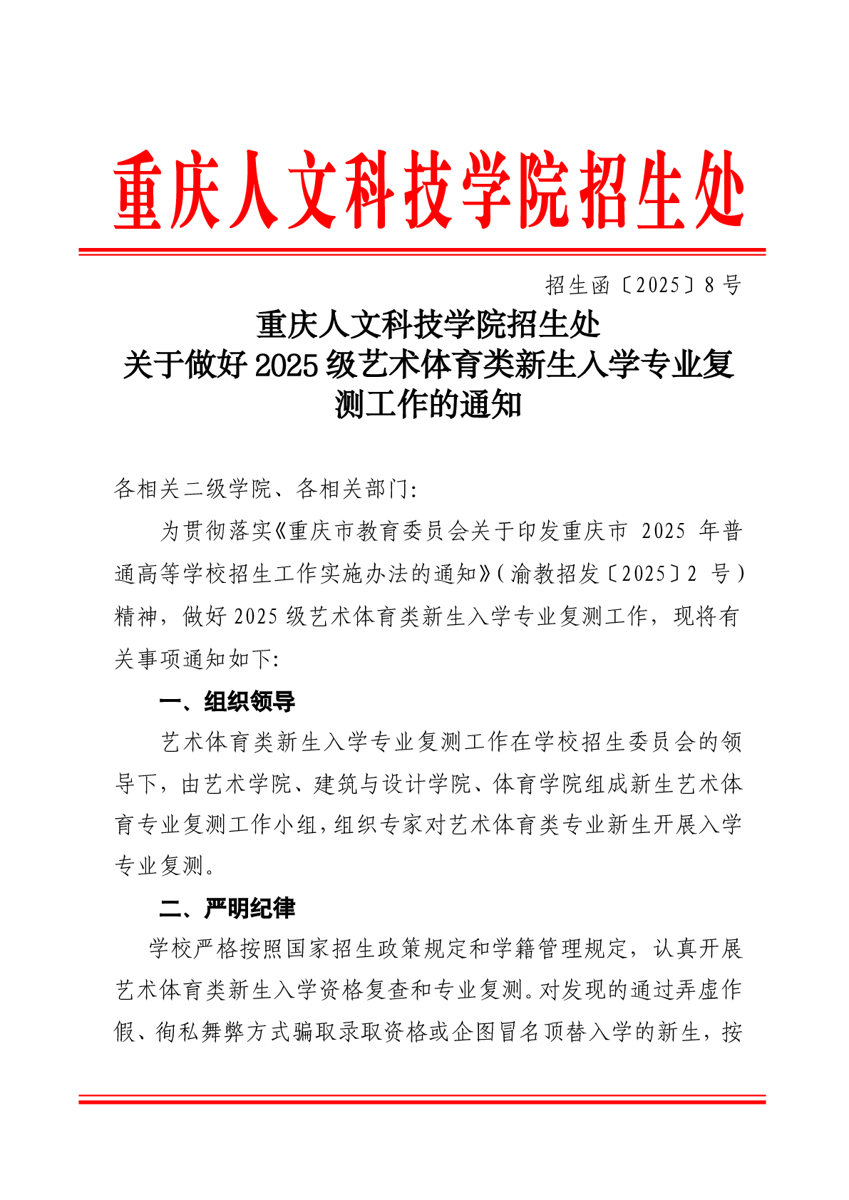 重庆人文科技学院招生处关于做好2025级艺术体育类新生入学专业复测工作的通知