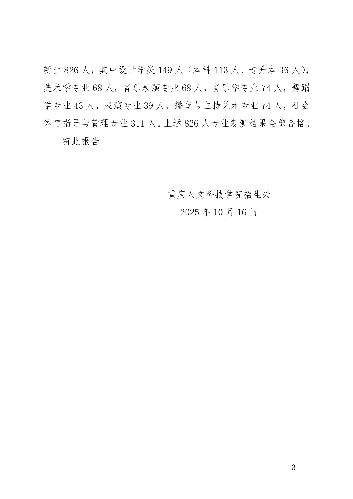 重庆人文科技学院招生处关于做好2025级艺术体育类新生入学专业复测工作的通知...